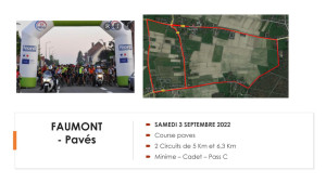 C’est ensuite le 3 Septembre que les compétiteurs se retrouveront pour une course avec pavés avec deux circuits proposés de 5 Km et 6 Km 300 et destinés aux Minimes, Cadets et Pass Cyclisme.