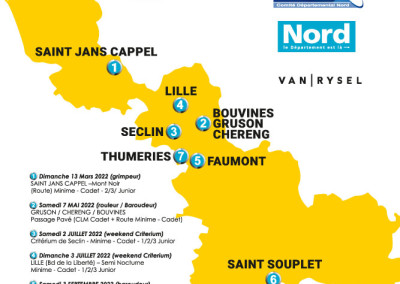 A.Leclercq : « En mai 2021 vincent Petit est venu me demander d’intégrer le comité Nord FFC afin d’essayer de redynamiser les compétitions cyclistes pour les jeunes. Cela correspondait à mon avis et à mes idées. J’ai alors accepté le défi, mon objectif étant de créer un événement cyclistes qui puisse attirer les jeunes en me basant sur plusieurs critères, les circuits (pavés, monts…),les périodes (Mars avril types classiques, mai juin chrono sprint)… et les thèmes (CLM, bosses, sprint…).