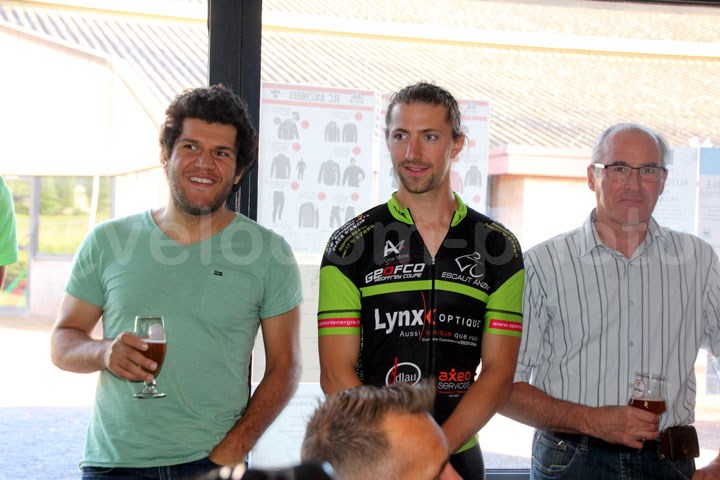 Le Team VC Escaut Anzin 2017 avait l’honneur de présenter ses nouvelles couleurs à la presse ce Vendredi au cœur du complexe sportif Léo Lagrange d’Anzin. Une belle présentation par le Président du Club Jean Luc Honoré toujours aussi actif pour son club et qui voudra briller en 2017. Etait présent pour cette soirée : Alain VINCENT Adjoint aux Sports, Benoit TAIULLEZ Responsable du Services des Sports , et Ivan THUMEREL Directeur Générale des Service d’ANZIN pour les élus et en ce qui concerne les sponsors : ADLU, le 107 ( 3 eme friterie de France et oui ) AXEO SERVICES,M DEPAEPE le responsable commercial de I T G R.