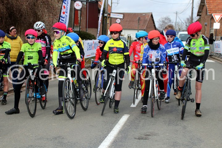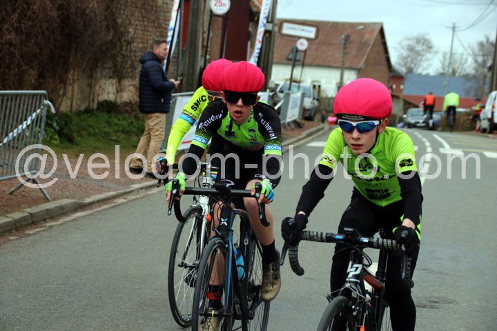 Chez les minimes, la course aura été très indécise jusque l’arrivée avec d’entrée trois coureurs qui se mirent en évidence : Erwan Canu ( EC Tourcoing ), Alban Chutsch ( EC héninoise ) et Maxime Van Friel ( SMCC ). Derrière ce trio de guerriers, deux coureurs se chargeaient d’emmener la poursuite avec Paul Timéo ( Team Decopub ) et Pierre Lemaire ( CC Bapaume ).