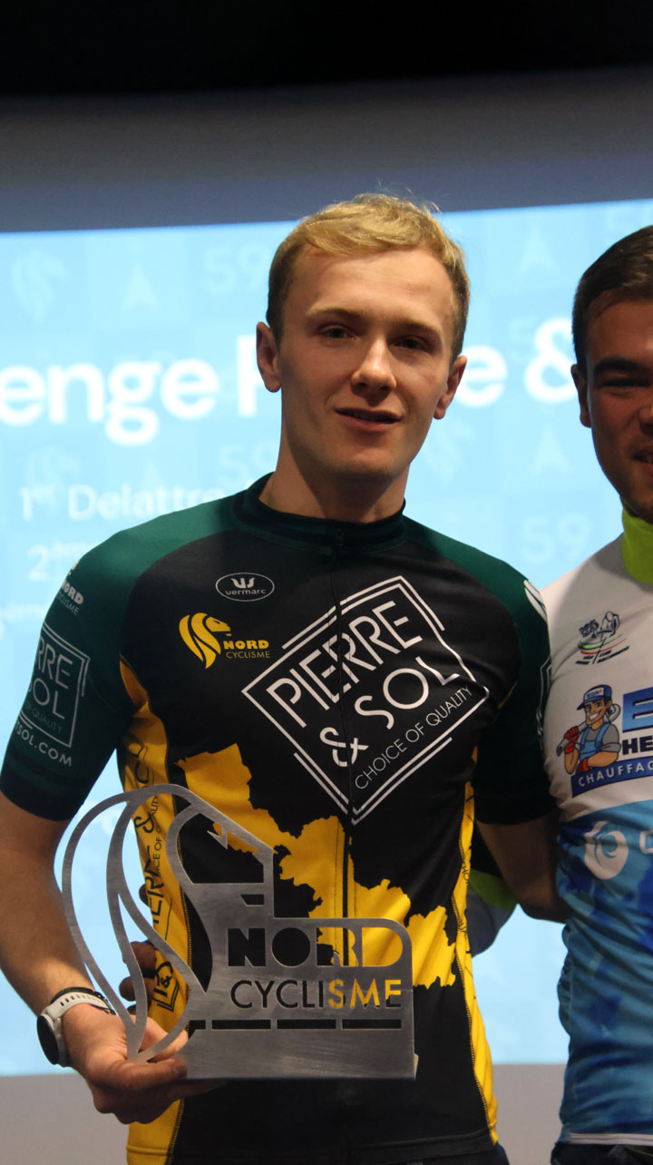 A.Delattre : «  J’ai pris beaucoup de plaisir sur les différentes épreuves, mais ma victoire la plus marquante du Challenge Pierre et Sol était la manche à Vitry-en-Artois, organisée par mon club, le Gazelec Douai, sur mes routes d’entraînements. C’était dans un coin de ma tête depuis le début de saison, et c’est bien de gagner ici avec le maillot de leader presqu’a domicile. »