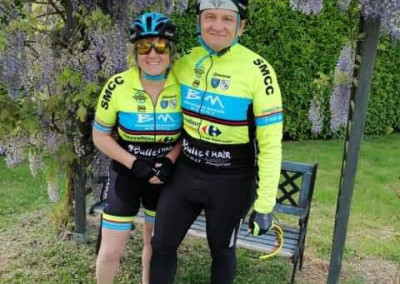 G.François : « j’étais déjà dans le milieu du vélo, depuis plus de 30 ans, mais je ne pédalais pas.. J’accompagnais mes deux hommes ( Gérald et Kevin). J’ai acheté mon premier vélo, il y a deux ans maintenant. Je me suis ensuite lancée dans les sorties route et les cyclos… »